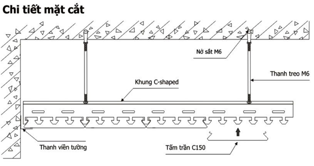 Sử dụng hệ thống treo dạng thanh, trần C-Shaped cho cảm quan về mảng trần hình sọc có độ dài bất kỳ. Trần C-Shaped sử dụng hệ khung cài để giữ hai gờ đối diện của tấm vào khung chính, đảm bảo các tấm trần thẳng hàng và cân bằng. Với các ứng dụng đa dạng về kiến trúc, mỹ thuật dùng cho nội và ngoại thất.