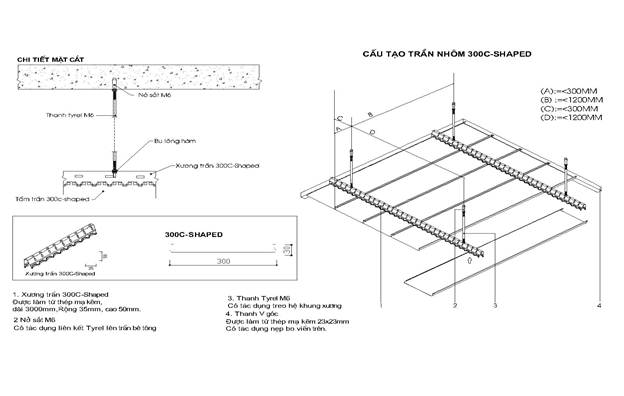 + Mô tả trần nhôm C300-Shaped:
