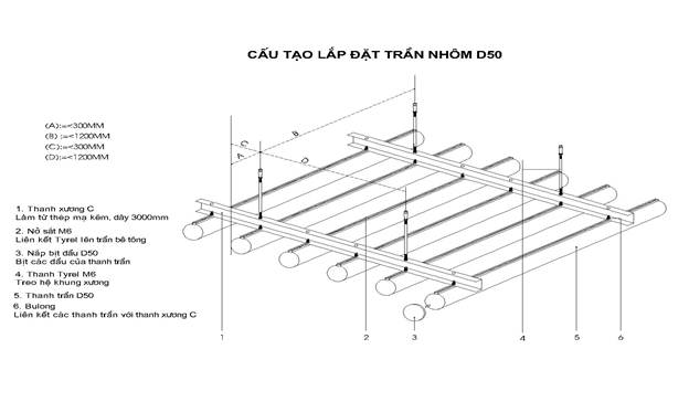 + Đặc điểm trần nhôm ống D50-Tobe